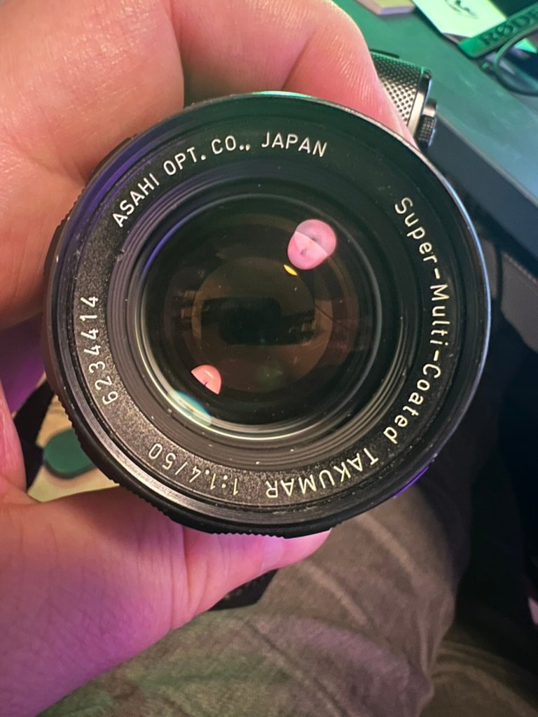 Japoński radioaktywny vintage Super‑Takumar 50 mm f/1.4 w wersji 7‑elementowej to klasyczny „normal” M42, który łączy mitologię całkiem konkretnie radioaktywnego szkła z bardzo praktycznym obrazem do codziennego dokumentu. Na pełnej klatce 50 mm daje perspektywę zbliżoną do tego, jak widzi oko, więc to naturalny wybór do ciała, twarzy i ulicy bez ekstremów. Przy f/1.4 obiektyw jest miękki, lekko „zamglony”, z charakterystycznym thoriowym ociepleniem i glowem wokół świateł, co świetnie gra z tematami kruchości, intymności, psychologii obecności. Po przymknięciu do ok. f/2.8–4 szkło robi się bardzo ostre w centrum, z przyjemnym mikrokontrastem i gładkim bokeh, dzięki czemu sprawdza się jako „poważny” dokument – miasto, wnętrza, portrety bez efekciarstwa. W praktyce ten Takumar może być domyślnym punktem widzenia: gdy chcesz opowiadać o człowieku i jego relacji z przestrzenią bez soczewkowego komentarza, bierzesz 50‑tkę i pracujesz kadrem, a nie optyczną sztuczką.
